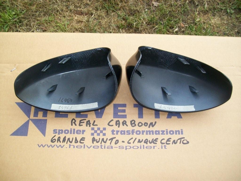 Calotte specchi Fiat Grande Punto REAL CARBON : Calotte specchi REAL CARBON look per Fiat Grande Punto. REAL CARBON LOOK, IL FASCINO DEL CARBONIO SENZA I COSTI DEL CARBONIO, UNA LAVORAZIONE PARTICOLARE RENDE IL VOSTRO PEZZO UGUALE AL CARBONIO ORIGINALE, UNA VERNICIATURA TRASPARENTE OPACA LO RENDE INATTACCABILE DAGLI AGENTI ATMOSFERICI. Trattasi di un set di cover intercambiabili alle originali.